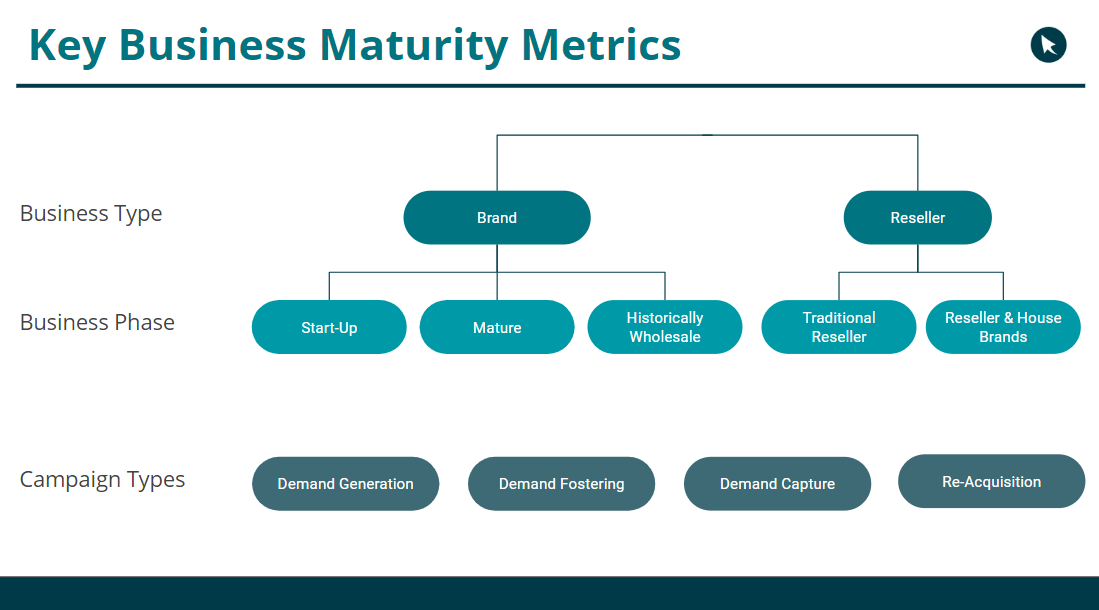 Brands and resellers that are early on in the growth phase will want to prioritize upper funnel demand generation across multiple channels.