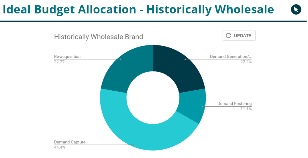 It’s a different strategy for mature brands that sell in-store or already have established retail channel partnerships. These brands don’t need to spend as much on demand generation because they’ve already invested in their brand recognition and benefit from the branding their channel partners invest.