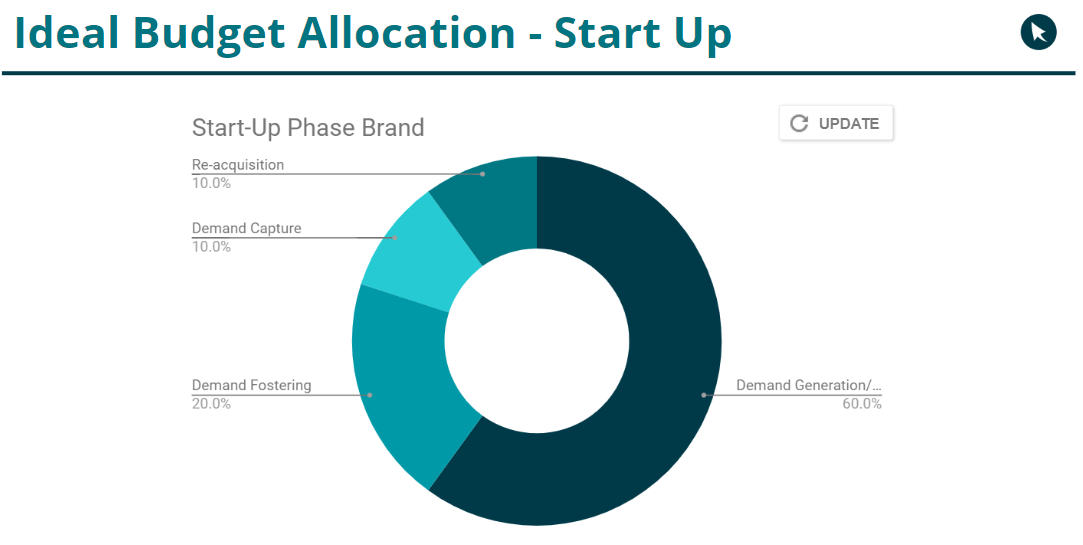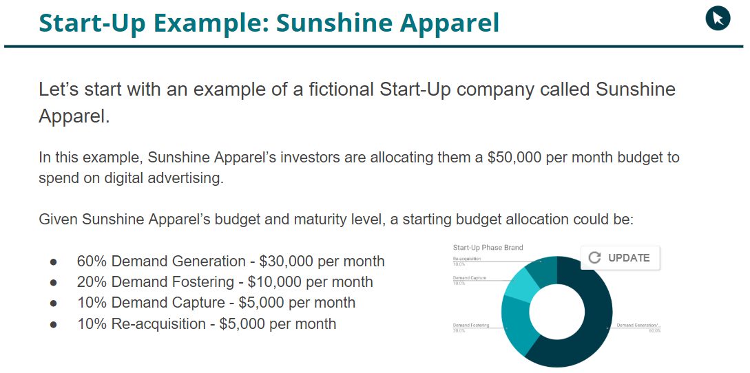 Let’s take a look at two example budgets for the young start-up brand and more mature digital brand.