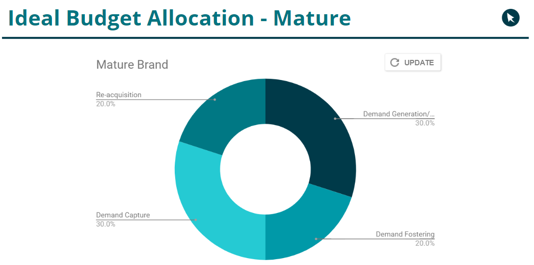 We’ve seen success with allocating a larger portion of budget toward demand capture campaigns with a more balanced ratio between demand generation, fostering, and re-targeting.